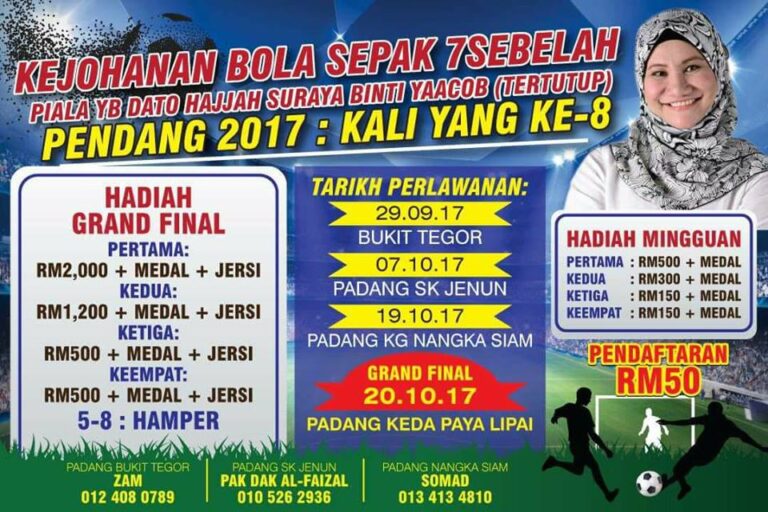 KEJOHANAN BOLA SEPAK 7SEBELAH PIALA DAO HAJJAH SURAYA BINTI YAACOB(TERTUTUP) PENDANG 2017:KALI KE8