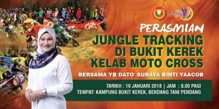 PERASMIAN JUNGEL TRACKING DI BUKIT KEREK KELAB MOTO CROSS BERSAMA YB DATO’ SURAYA BINTI YAACOB TARIKH :19 JANUARI 2018 HARI :JUMAAT MASA :8 PAGI TEMPAT :KG BUKIT KEREK BENDANG PETANI PENDANG.