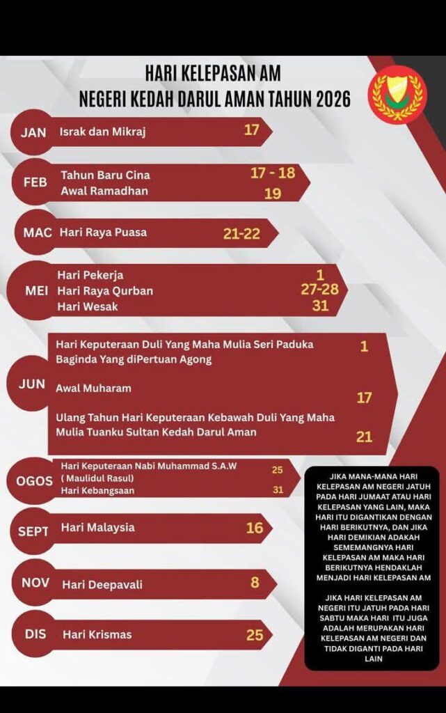 HARI KELEPASAN AM NEGERI KEDAH 2026